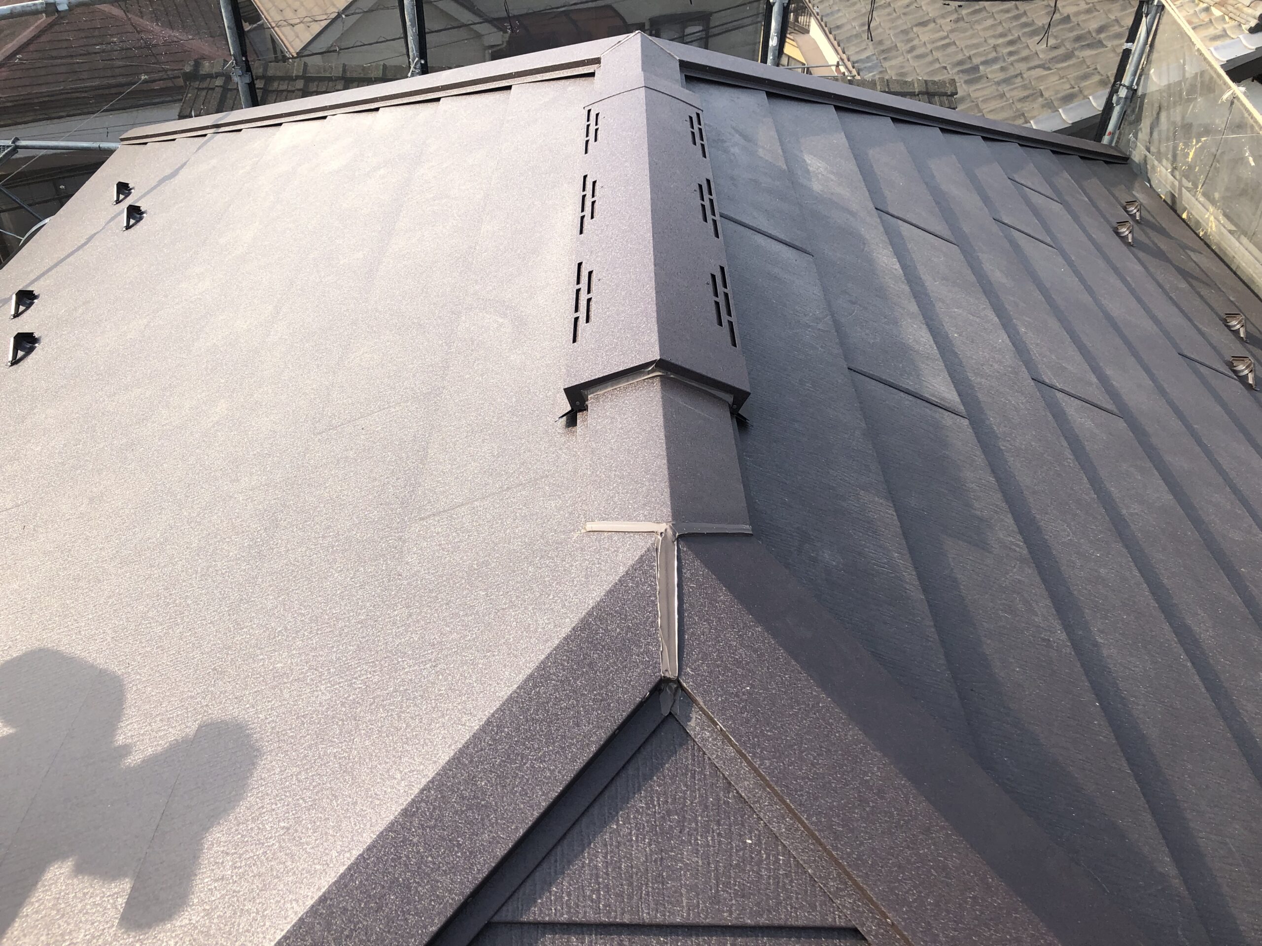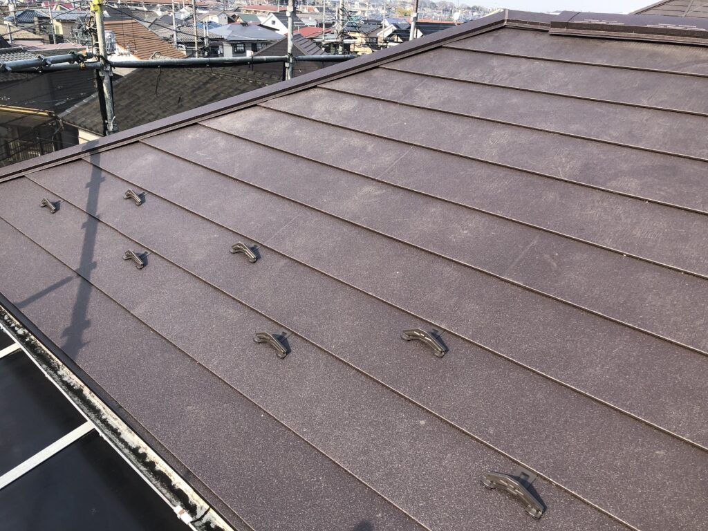 新しく施工させていただいた屋根材はガルバリウム鋼板。とても丈夫で、長持ちします。