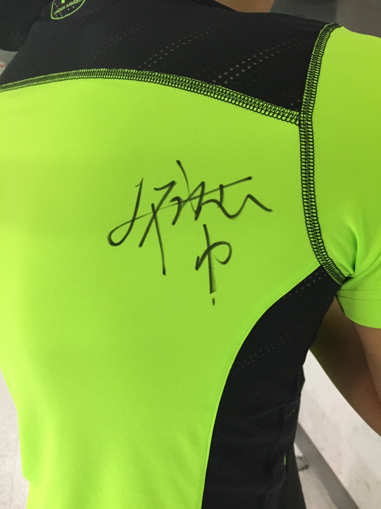 まさかお会いできるとは思ってなかったので嬉しくなってしまい思わず「サインください!」と言ってしまいました(^_^;)平山さんはとても気さくな方で「いいですよ!」と言って着ていたシャツにサインいただきました(*^^)v