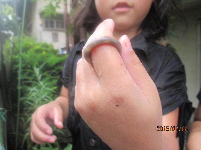 ミミズの長さは15センチほどでした。