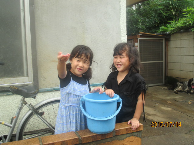 昨日宿泊した孫達の遊びは梅雨だというのに水遊びです。