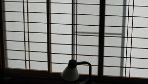 少し前はロールカーテン、その後布のカーテン、最後はやっぱりと障子にしました。
