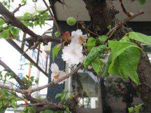 お雛様の飾花が痛んだので処分しようかと思いましたが、ちょっとだけもったいなくてとっておきました。 事務所前のあんずの花も終わり、葉が付き、実もちらほら出てきました、 そこに花をつけたら、夫がひっかかりました。 「おい!!たいへんだ花が狂い咲... -