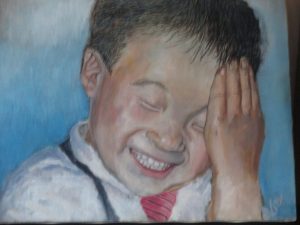 こんなシャッターチャンスはないと思うほど、自然の笑顔の写真があります。 長男の子どもが次男の結婚式ではしゃぎまくり、「いたずらしちゃった~~~」と言ったタイミングの写真でした。ひょんなことから安価な値段で絵を描いてくれる人に出会い、今回の... -