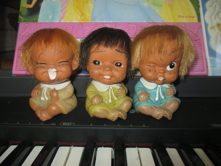 この人形はおそらく70年前のものです。 なんでも姉が生まれてから銀座で母が老夫婦が売っていたのを買ったということでした。 物持ちのいい姉が(と言ってもこの姉は片づけ魔)が何年か前に持ってきたものです。何となく捨てられません。 お宝でもないのに... -