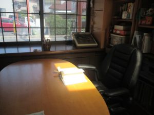 ここだけ朝日が天窓から入ります。ちょうど9時ごろです。 まず午後の事務所の暑さは、西日がもろにあたるのでとても暑いです。 事務所横の1段上がった部屋は温度が少し下がります。 キッチンはこれまた下がりますので涼しいくらいです。 さて隣の和室は西...